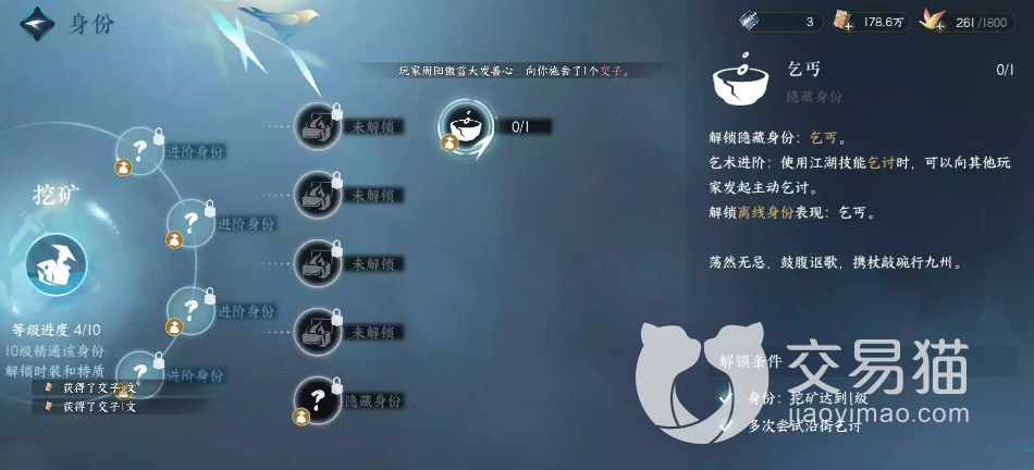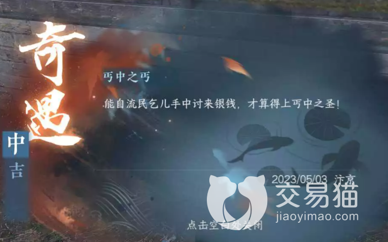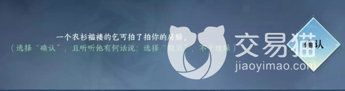 乞讨成功之后大家就可以解锁隐藏的乞丐身份啦,这个时候要是有乞丐过来跟你互动的话就是触发了奇遇,要是没有的话,就多乞讨几次,然后将乞丐需要的道具交给它,一般是会要一点银两,给了之后大家就可以了解到丐帮的一些信息,后续也可以做入门的考核奇遇啦。
