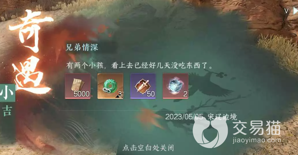 任务奖励方面是5000交子,3个玉和50令牌加两个内功心法,虽然奖励相比其他任务,其余而言非常的丰厚,但是想必很多玩家们对奖励已经无所谓了。交子有的是,也就是玉和心法缺了点。更关注的还是故事本身,一个做的相当不错的奇遇事件。