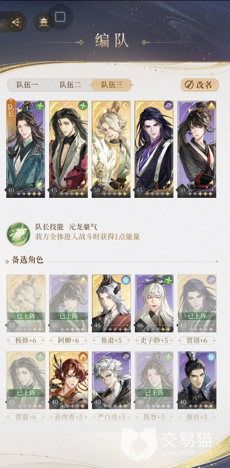 这个阵容在战斗时,建议选择陈登作为队长。陈登在作为队长出战时,队长技能元龙豪气将在战斗开始环节为队伍中的所有我方友军提供一点能量,使队伍中其他密探释放技能更加快速,能够尽快的击败敌人。