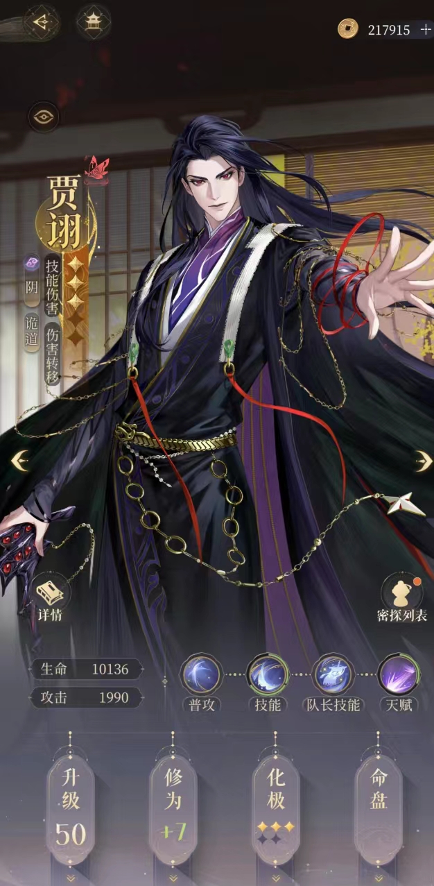 虽然玩家们刚看到这个阵容时会认为队伍中的三个橙色密探非常难获得,但其实阵容中的杨修玩家们只需要通过完成任务即可获得,郭嘉和贾诩两位都是常驻卡池中的角色,玩家们在进行游戏中的日常任务时就可以领取到大量白金币和召唤券,最多保底四十抽就能抽出橙色密探,所以这三位橙色密探完全不需要玩家们进行氪金,只需要随意的进行游戏即可获得。