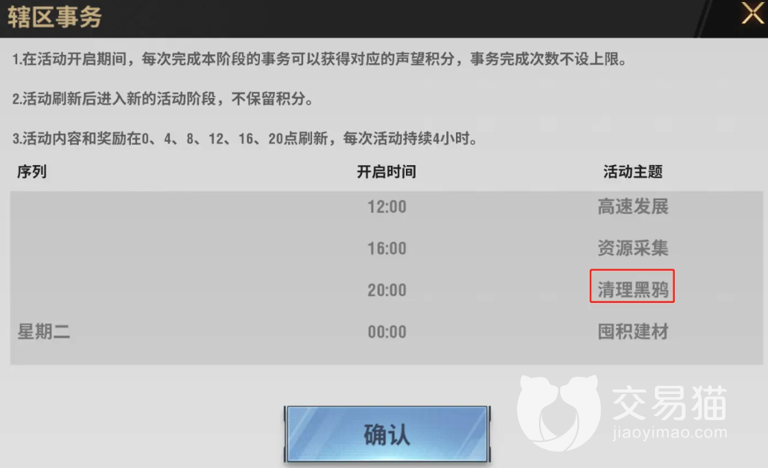 在大家入坑之前,主要就是把辖区里面的活动任务全部都做完,这个并没有什么难度,只需要注意不要直接就把卡给抽完即可,记得跟随活动来同步抽取,主要集中提升采集、科研和建筑等方面,这对于玩家完成活动来说是能提供帮助的。