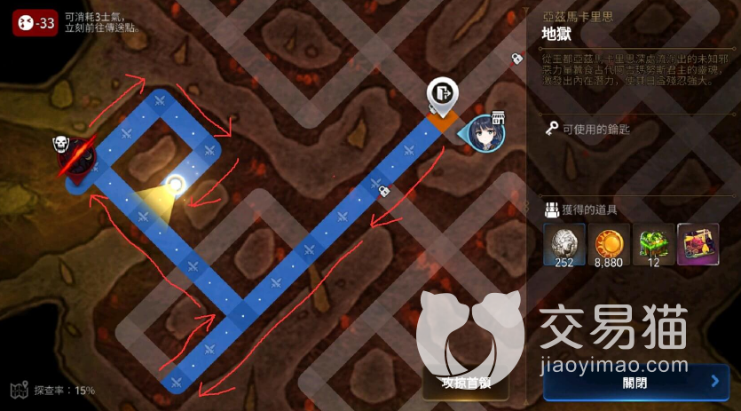 在传送门中间直接点击传送,直接来到对面迷宫往前走,再往右走就会有第2个传送门,在其中会有一只守关怪,打败守关怪就能通往第4层。第4层并没有弯路,只需往前走,然后再往右拐,再继续前进,就能通过,并达到最后一层。最后一层也没有弯路,就是单纯的长路线在通关的路上还需要解决几只小怪,然后能看到关卡的大boss这位大boss比较难打,建议各位让队伍的队员平均成绩拉到80级,再来通关。