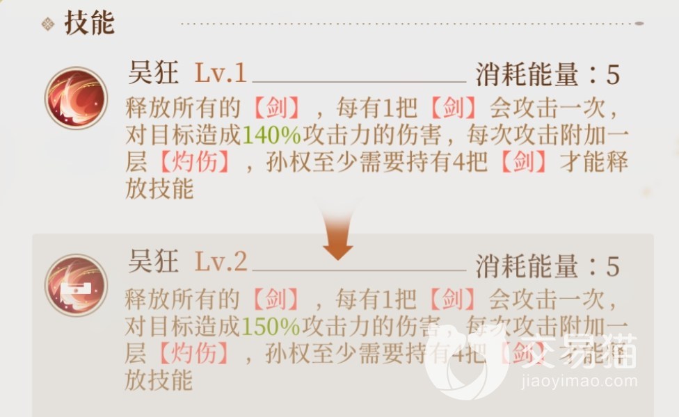 孙权是利用“剑”来获得多频次的攻击,普攻挂灼伤越打伤害越高,同时天赋技能让他能概率反弹100%受到伤害,并且战斗中受到致命伤害时免费并回复30%最大血量。种种机制让孙权既可以走输出路线也可以走坦克路线,或者半攻半辅。