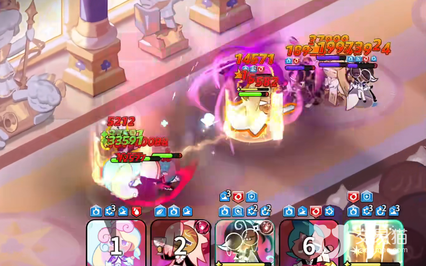 奶油独角兽饼干的普攻就相当于是回血,并且回血的同时还会给其他饼干人套上buff,获得伤害减免效果,效果可叠加层数(上限3层)。