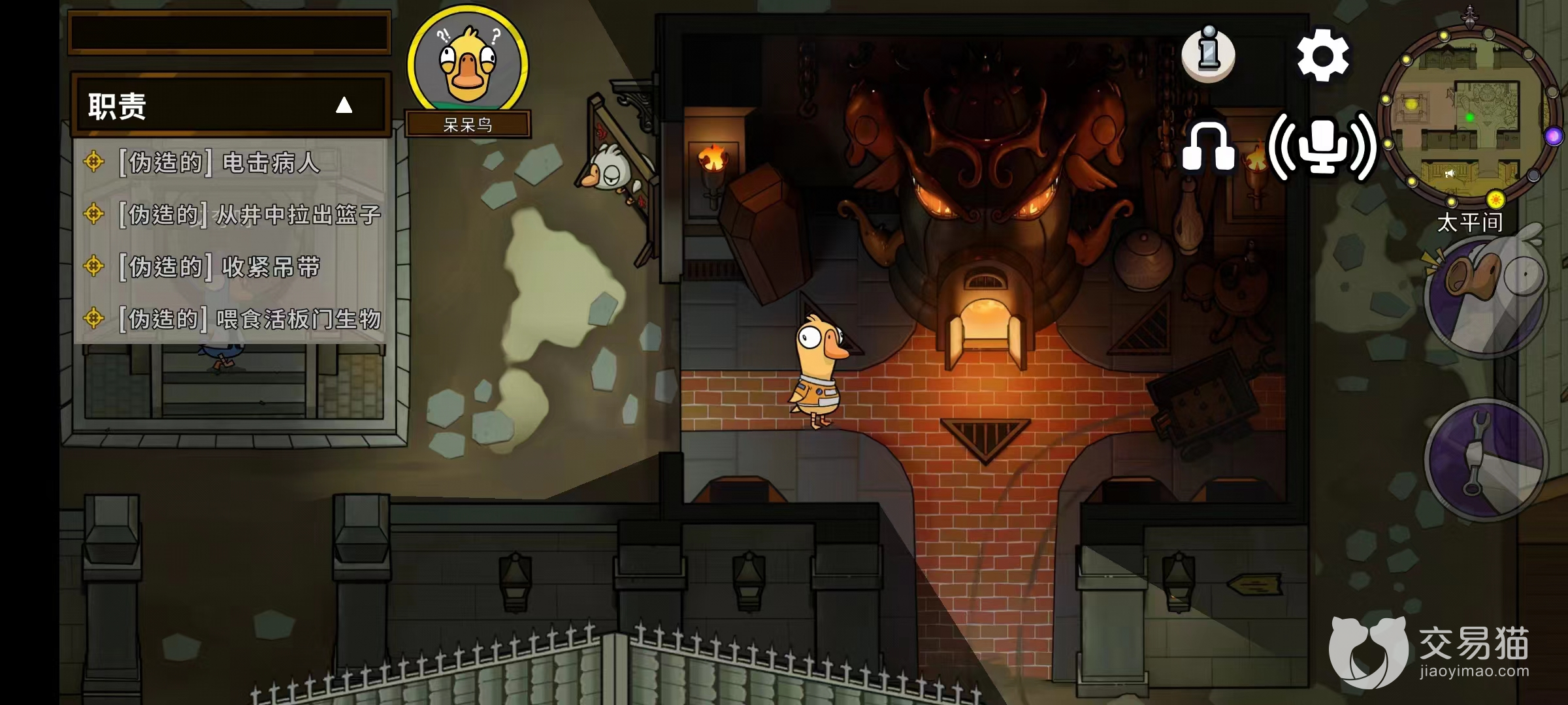 4、马拉德庄园:这里的地形杀是在门厅的吊灯位置,鸭子做了破坏任务后可以引诱鹅在这降下吊灯砸死鹅,不过这个地形杀只能用一次;