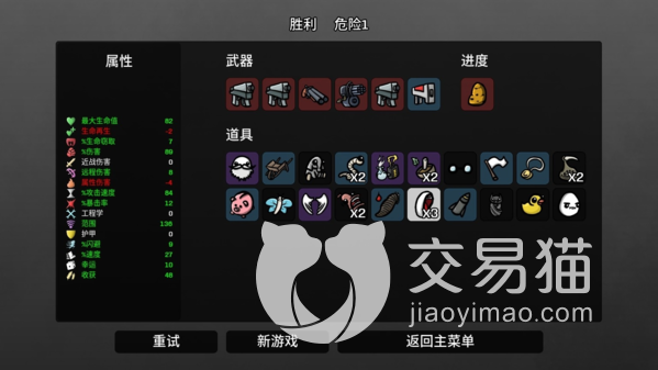 首先各位玩家在进行游戏的时候,可以提前先看一下我们的成就系统。一般情况下,土豆兄弟的普通版本将会具有59个成就,玩家每达成一个成就系统会给玩家赠送一些固定的资源或者是道具等等。所以达成这些成就的时候不一定需要按照固定顺序,如果有关卡过不去的话,可以先达成其他的成就,先获得其他的角色,回过头来再进行刷本。