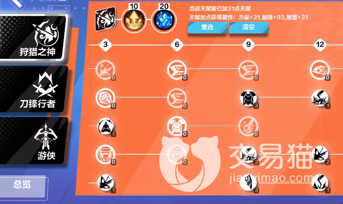 在天赋技能搭配方面主要是以下方案: