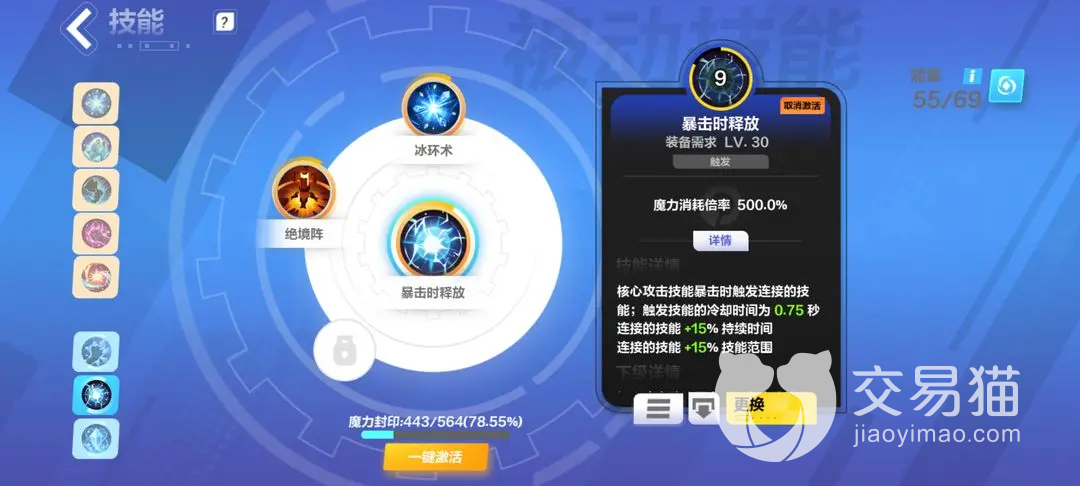 4、到了这里就是比较进阶的“技能冷却了”,比如使用的是多段攻击一秒钟之内可以触发10次暴击,那么正常情况下应该会触发10次B技能。但是由于冷却时间的限制,可能就只能触发两次。玩家需要做的就是使用装备、天赋、词条等功能来减少这个冷却。