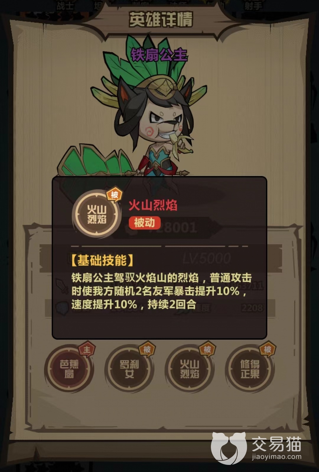 铁扇公主是中国神话西游记中的人物,在其他游戏中出现次数比较少,但是在王者猎人中却以非常搞笑的形象登场,是一只拿着芭蕉扇啃着香蕉的狗将,非常有喜感,今天小编来讲下王者猎人铁扇公主怎么打。要想正确运用武将,需要先了解清楚技能效果和特点,这样才能确定好定位。