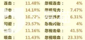 二级战斗属性就是那12个特别属性。击晕即为对敌人打出伤害后有机会把他打晕,让他没法做出反应一动不动,在这基础上还能攻击一次。连击即为达到对方后有机会再打一次,连击越多下次概率越低。吸血即为给敌人造成伤害后,自己可以回伤害值百分比的血。反击即为被打时有机会打对方,能中止对方的连击。闪避即为有机会躲掉技能,根本打不着。暴击即为打到对方时有机会伤害翻倍,而且这个躲不掉。相应的这六种属性的抗性就是减少敌方的这几种效果,比如忽视吸血就是能让对方少吸血,按百分比减少;忽视暴击就是减少对方暴击自己的伤害,也是按百分比计算。其中连击,反击,击晕这三种属性加它们的忽视抗性都是在战斗中触发的。