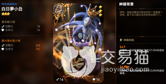 4、白日梦小丑:大家再熟悉不过的神器了,绝大多数的输出角色都能用得上,没有不练的理由。