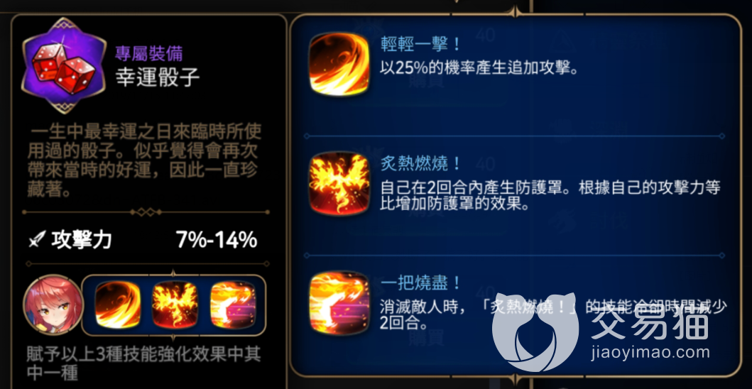 3、地狱切割机:效果简单明了就是增加攻击,和角色本身的契合度很高,因此是比较推荐的。