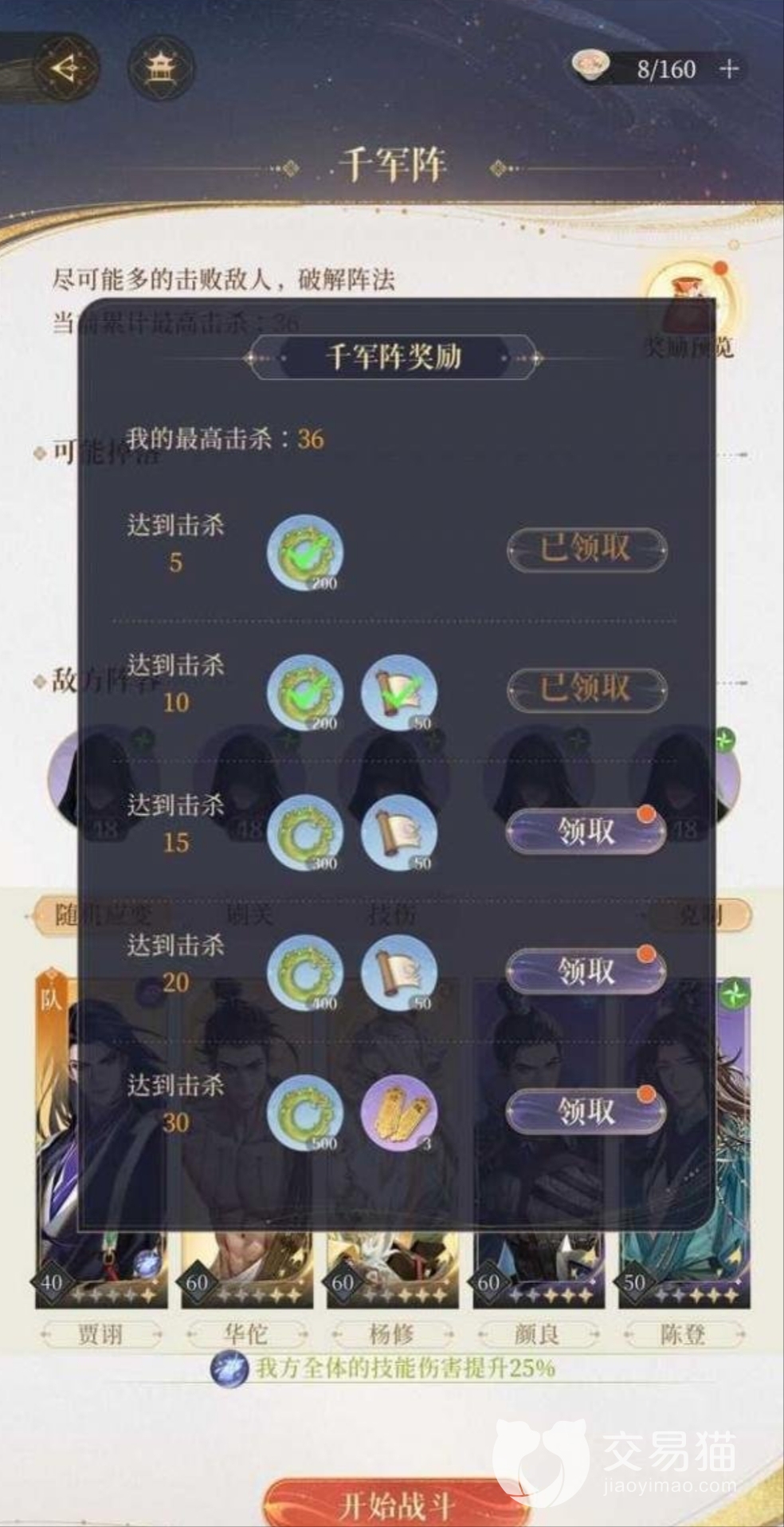 第二个阵容是华佗、贾诩、颜良、杨修和陈登。这个技能可以把阵容全体的技能伤害提升25%,同样的参考小编讲的第一个阵容,华佗的技能携带要包括岐黄神纪和弃医从武。除此之外,还需要有加攻减疗,帮助团体增幅。其他人在阵容中也是辅助华佗的存在。
