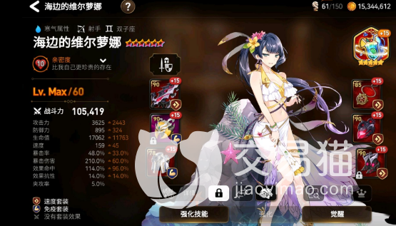 水扇也是游戏中新加入的强力角色,她是木扇的泳装版本,人物装扮清凉,是夏日活动中的全新角色,她擅长用扇子攻击,可以用60%左右的概率,在回合中造成标靶,当技能觉醒后,可以将回合数升级为两回合,基本技能是比较平常的,可以在pve中,选择角色的4速度,加上两个命中套装,也可以堆带攻击,加上爆伤式的速度,作为主控角色使用,在pvp中,可以将命中属性作为主要技能,来克制带有boss的敌人群体。
