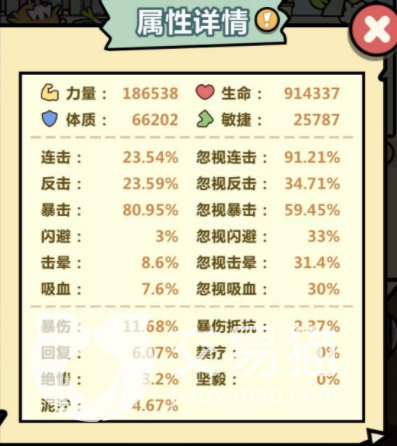在这款游戏当中一共有1~3级23种不同的属性。一级属性最少只有4种,力量属性帮助玩家提升当前造成的伤害,生命属性指的是玩家当前的生命值,而体质属性越好,玩家受到的伤害也就会随之进行减少。敏捷属性自然就是灵活度,越高的一方发起攻击的速度也就会越快。在一级中这4个属性都是值得玩家去提高的。