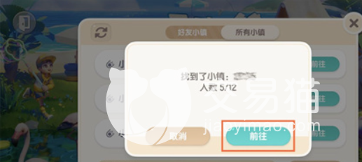 告诉好友后,我们可以根据这一串数字,搜索小镇的位置,搜索成功之后就会出现,是否前往的按钮,玩家前往就可以到达好友的小镇中进行游玩了。