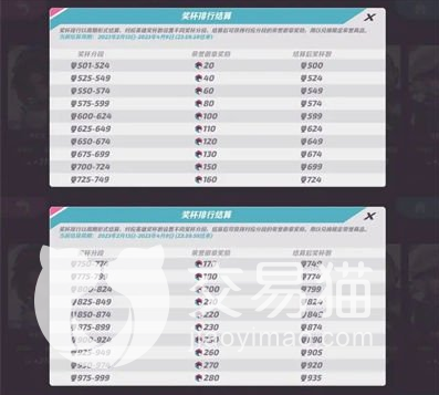 点开过后,玩家们不止可以看结束时间,还可以看到每一次结算完的奖杯过后会复预告的荣耀徽章,而这些荣耀徽章就可以在游戏内的商店换取一些不菲的奖励了,也就是说奖杯数越高换取的荣耀勋章也就会越多,同时获得的资源也会越来越多。