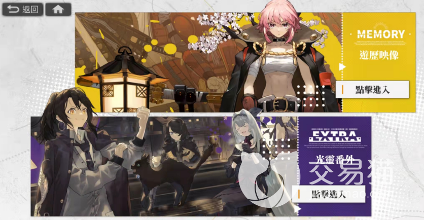 途说纪行一共分为两个界面,上面的界面为“游历映像”,在这个板块中,制作组十分良心的为各位玩家整理了开服以来所有的活动剧情,中途入坑的玩家们可以在这个板块尽情的享受之前的活动剧情,甚至连活动赠送的光灵玩家们也可以在这个板块中获得哦!