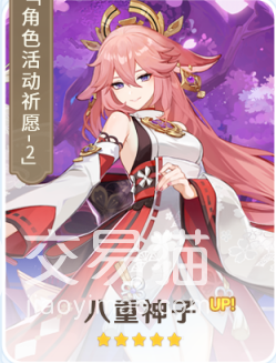 之后是第二位角色,这位角色拥有一头粉红长发,身穿一身巫女群,还有一对狐狸耳朵,说到狐狸耳朵估计就有不少玩家知道她是谁了,没错她就是大家口中的屑女人八重神子,虽然说大家喊她屑女人但是大家对她的喜爱程度确是很高的,所以想要抽取这位角色的玩家们这次一定要好好把握机会了,因为错过这次复刻后,下次复刻就不知道要到什么时候了。