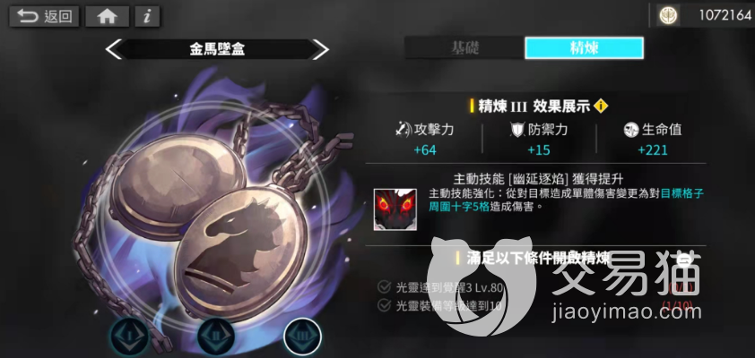 不过,虽然哈提的精炼提升很大,也很强,但是精炼的条件是要求光灵达到了三觉八十级,且装备的等级也达到了十级,这对前期资源不足的玩家来说,所要消耗的资源是很恐怖的,各位小伙伴在游戏的前期还是尽量别追求装备精炼,而是拉高队伍的平均等级来开荒主线比较好。