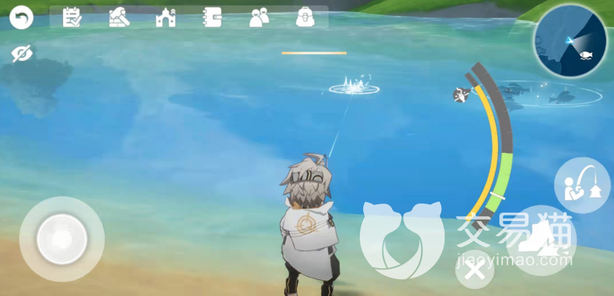 之后玩家们对着屏幕中的“鱼群聚集处”,点击界面右侧的钓竿键就可以直接进行钓鱼了,一般来说,一条鱼上钩大约需要十几秒,小伙伴们一定要耐心等待,碰到移动键的话,钓竿可就自动收回来了。