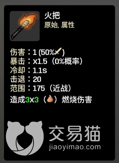 武器方面这里建议大家选火把,火把是一把可以持续造成伤害的武器,这把武器看似和恶魔没有什么相性,但是在后期恶魔带上吸血道具之后,火把的燃烧伤害是可以持续给恶魔吸血的,收益非常的高。