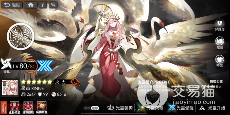 觉醒三在八十级满状态情况下,基础攻击力达到3300左右,防御力也有1100以上,且生命值将近9500。一流级别的火属性角色,光靠基础面板方面,加上技能的配合的话,感觉能作为火系新的战神登场。而且不同于其他传统体系,火卡莲可以为队伍在角落格子方面也有着一定的用武之地,但技术难度较大,需要靠玩家们的操作才行。