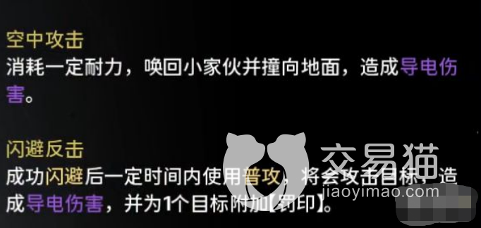 如果是空中攻击的话,消耗的耐力要比重击多,而且这个时候会召唤来小家伙,小家伙会撞向地面对敌人群体造成电属性伤害,最后一个则是闪避加反击,如果敌人在攻击的时候吟霖成功闪避了,就会立刻反击一次普攻,使用普攻的同时只要是成功击中目标就可以带来一次反击,而且造成电属性伤害增加,反击就等于带来一次普攻的伤害。