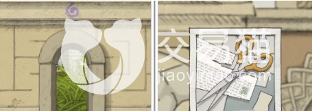 在他走到了墙壁旁边时,就会直接观察剪刀的图案了,这时玩家可以将小孩儿想象当中的剪刀外框给拆下来。然后将其给放置在第二个格子当中,教堂图片当中的小门就是目的地,这时将其给放置在第一个格子当中,然后在第二个格子当中的剪刀会出现多个剪报的符号,大家只要选取左下方向左走的这个符号,然后再将其给放大,将其给放置在外框套上,小男孩儿就可以按照这个标记去进入小门了,这时整个游戏当中会用得到剪刀的地方就正式结束了。