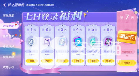 当5月10日活动更新之后,大家可以在游戏当中看到这个活动,在活动里面我们可以直接点击活动总揽,首先会出现第1个活动7天登录,这个活动需要连续登录7天就可以达成任务。完成之后点击领取。里面会有碎片,卡包,点券,道具卡,还有信用卡等等,奖励比较丰厚。各位玩家完成了7天登录的任务后,就可以获取奖励,再继续截取下一个任务。因为这是一款正版游戏,所以使用起来效果比较好,任务也非常多。