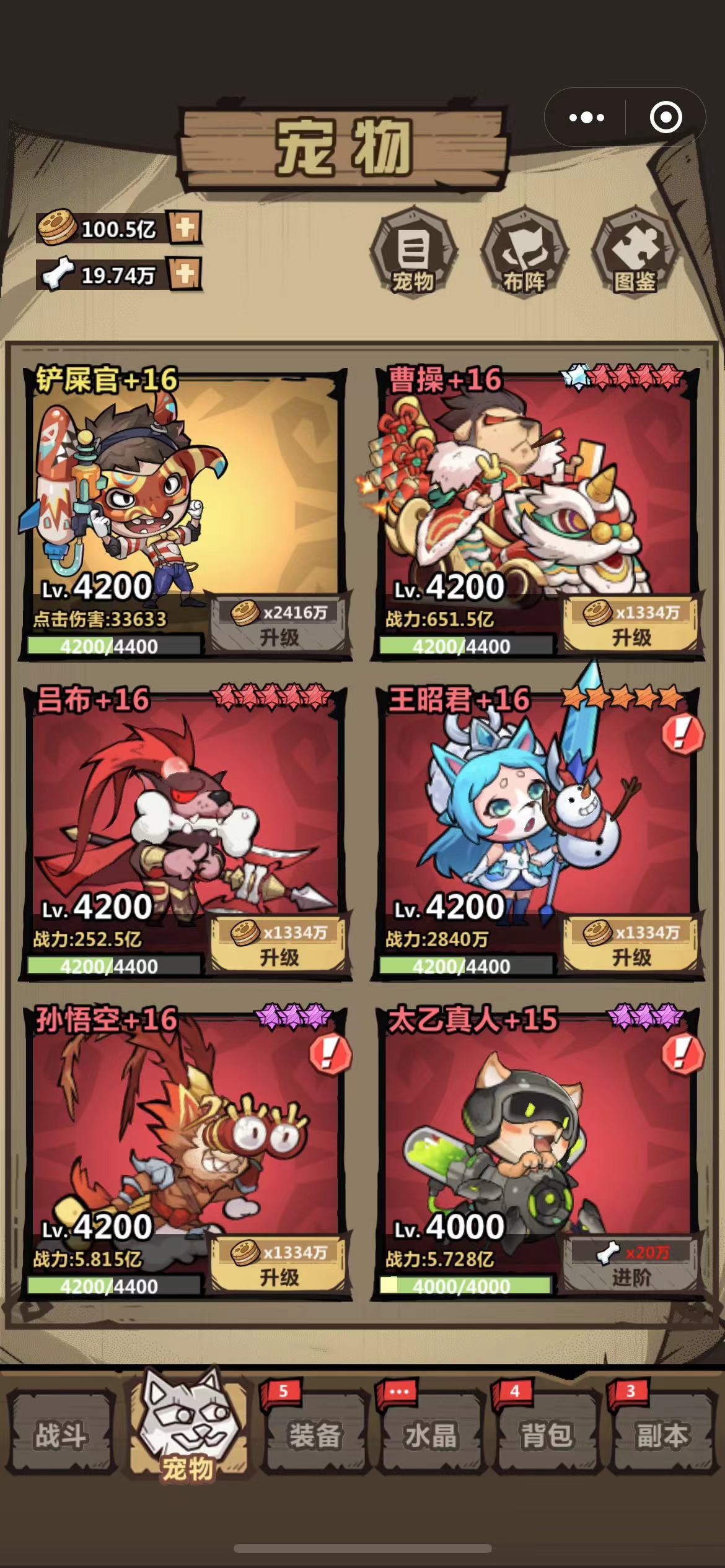 曹操虽然是主武力输出选手,但是如果大家的曹操等级不是特别高的话,也可以替换为吕布或貂蝉。悟空和荆轲每次打怪时必带因为悟空的话,他打怪时可以有30%的增伤。荆轲对于敌人的话,可以有捡对方的防御和减破甲抵抗,减伤,减暴击等作用。都是非常好用的英雄将领,基本上小编每次打怪时必带的。