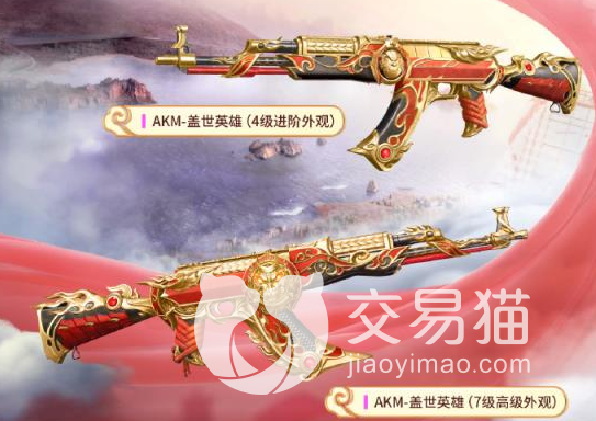 本次所给的联动皮肤有两种橡皮,分别为akm和awm。akm的联动皮肤叫做盖世英雄,一共分为7个等级,第1级的外观比较像黄金ak,整体呈现出金色状态。在枪托和枪板上有红色的装饰,第4级的外观就比第1级要多出很多细节和纹理了,第4级的枪有很多火云加持。第7级是最高等级,皮肤的主色调发生了变化,从金色改为红色色调,整个枪支上都有着红云的点缀。
