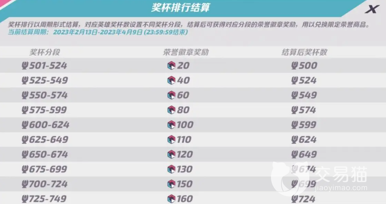 在那里还会给出你们在结算之后可以保留的杯数是多少,就比如当前赛季你的角色单个杯数达到了1000,那么在结算的时候就会掉到950,同时还能获取到300个徽章,而单个角色掉了50,所以总体的也就会掉50。