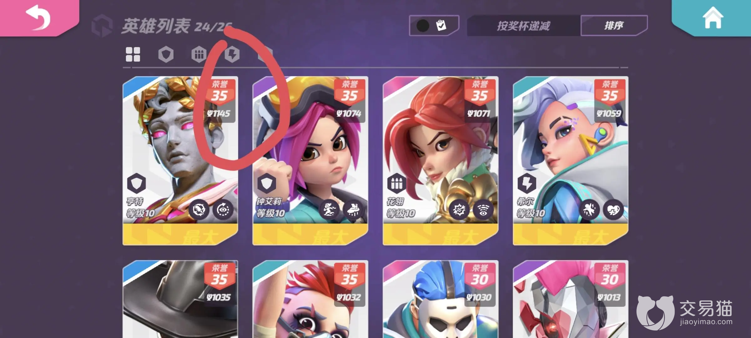 这里的奖杯分为两种,一种是单英雄的,也就是你们在英雄列表中可以看到的,每个角色的右上角都会有对应的奖杯符号和数字,那就是这个角色所对应的奖杯数量了,它的多少取决于你们自己的游玩内容。