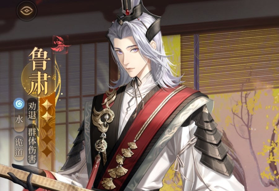 然后是一些密探,例如“鲁肃”,玩家新手十连里必然会得到的角色,一手概率劝退帮助我们通过了许多关卡,鲁肃“颇有家资”来找广陵王帮他相亲,游戏里关于他相亲这段的剧情还是挺有意思的,大家不妨在名册中看看。