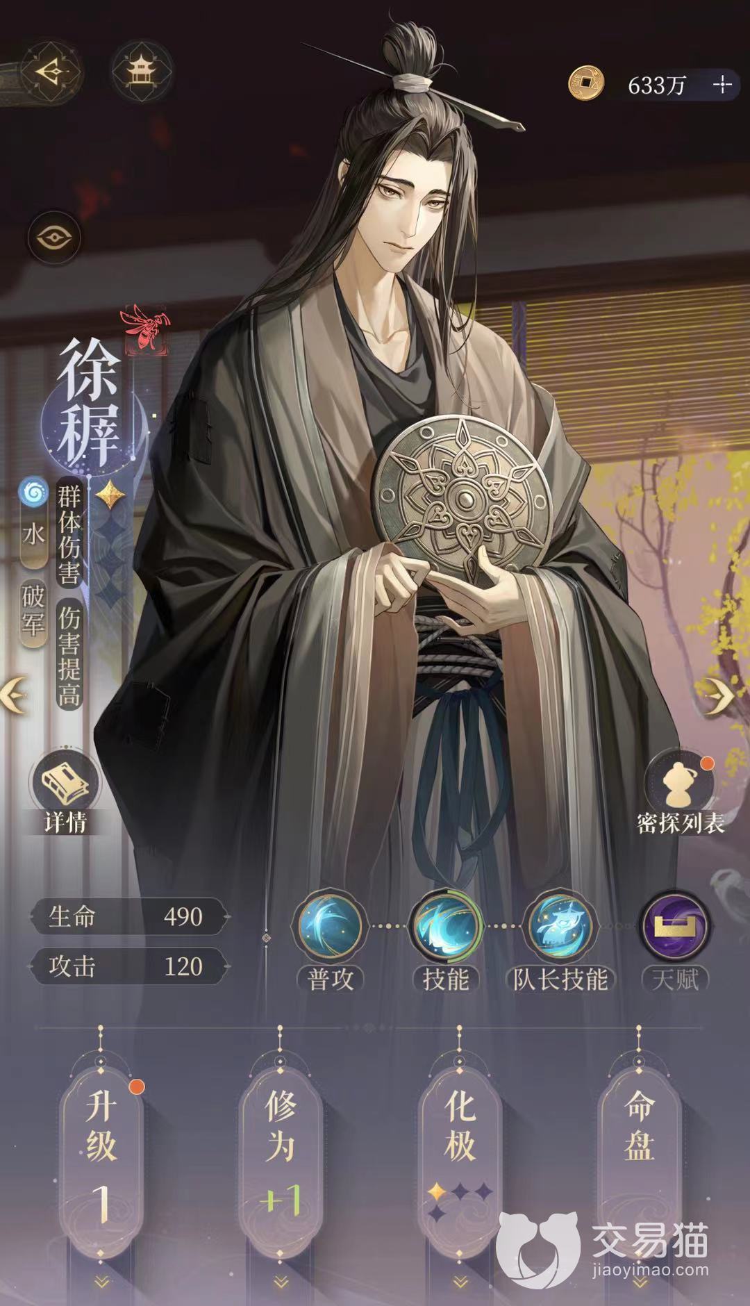 天赋技能:密探二星解锁鼓舞,提升自身15%的攻击力。升级4星解锁灭谛,普攻与技能的伤害均提升15%。作为定位是破军角色的密探,徐稺拥有不错的加攻天赋,不过要升到4星才有强势期。