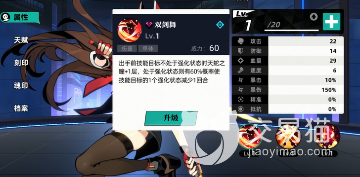 普攻和技能这块,相较其他角色,缪斯也有一些独特的改变,首先是普攻“双剑舞”,作为一个威力六十的单体伤害技,首先它在输出上就要略胜一筹,其次,如果攻击的是没有强化的敌人,那么自身还会叠加一层天蛇之瞳,速度的叠加保障了后续能够持续的获得先手优势,开局使用这招的话成功叠加的概率很大。当然,如果对手身上有强化,那么也无需担心,因为它有极大概率能够削减敌人一回合的强化效果,这就对那些依赖强化的敌人形成了一个很好的反制。