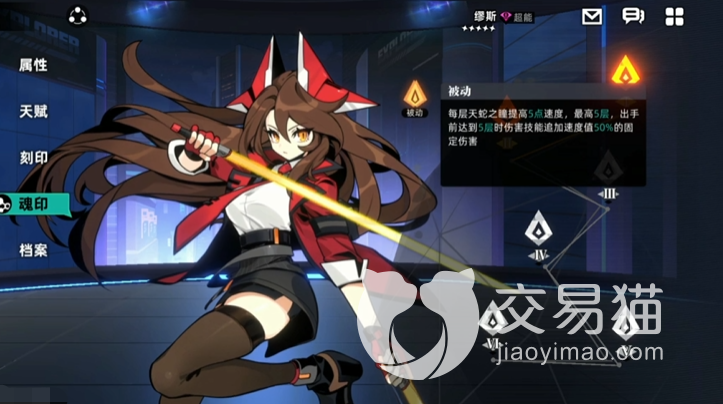 魂印则算是缪斯的一个被动,这个被动的效果是每层天蛇之瞳会增加5点速度,并且叠满五层后技能还会附加相当于一半速度值的固定伤害,值得一提的是魂印本身具有很强的成长性,以至于到了后面该被动每层添加的速度,以及满层附加的额外伤害都会进一步提升,基本上到了后期,缪斯能在快人一步的前提下,轻轻松松打出成倍的输出。所以这一魂印的效果充分保障了缪斯的先手能力和爆发能力,与大多数角色硬刚时她都能抢占先机。