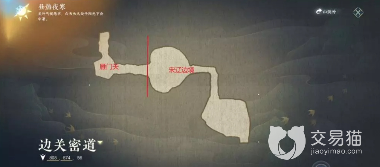 由于这个洞窟的地点,距离雁门关的距离也不是特别远,这导致这个洞窟秘境某种意义上并不算是常规探索洞窟,反而是可以与宋辽边境和雁门关产生互通的密道。不过两边并不能真正相通,在红线区域会有一个封闭的石门,很难以打开,并以此为界区分了两张地图。