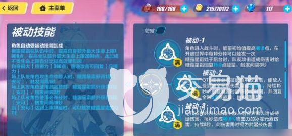 被动技能:如果角色获得了被动技能的加成,那么不仅可以额外增加1000点的生命值上限,而且还能够,让全队提升2000点生命值。最重要的就是这个加成,不会受到生命值的百分比效果影响。