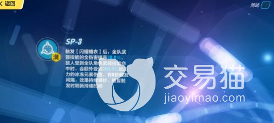 在玩家顺利触发了闪耀糖衣之后,整个队伍的武器技能伤害都能提升30%。在敌人受到武器技能伤害的时候,也会在额外受到200%的攻击力,冰冻元素的伤害。触发有6秒的间隔,效果能够持续10秒。
