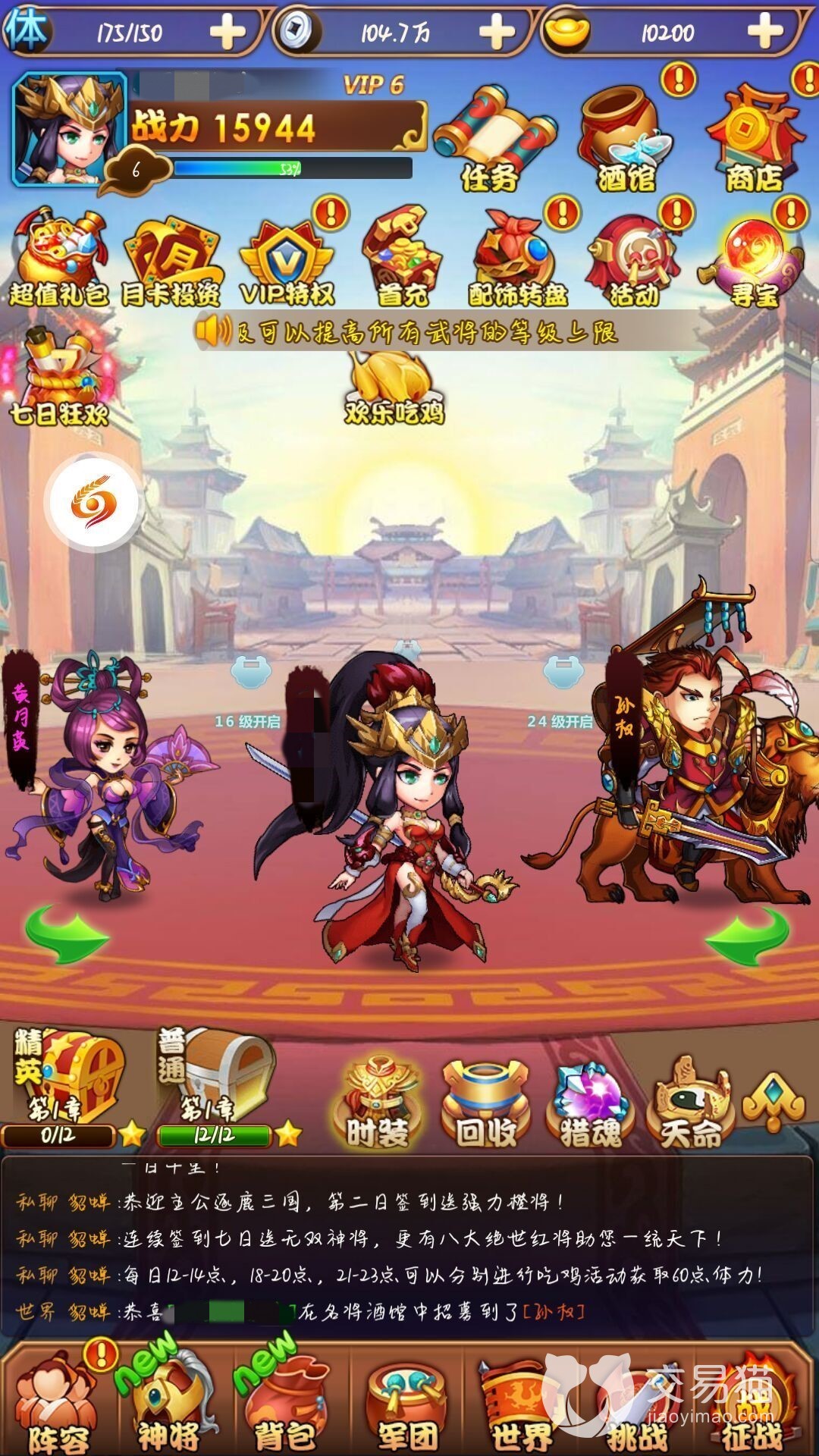 相关人物的材料可以进行招募而得到,也可以通过一些任务获得特定人物的材料。人物升级要提升相应的等级,就需要消耗武将经验池里的经验,经验池里的经验主要通过任务获取,比如神龙塔。当然,这期间如果您想要获得相应的碎片可能要考验脸黑不黑了。