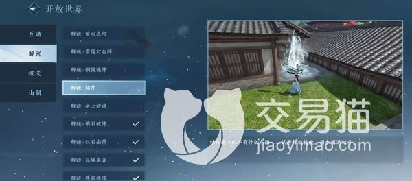 枯井:这个解密非常简单,因为它是个枯井,所以破解方法就是让它有水就可以了,只需要使用江湖技能水,就能完成解密,获得宝箱。