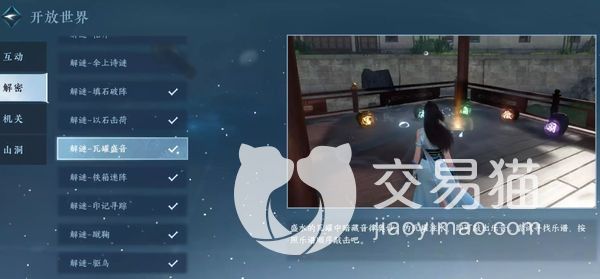 瓦罐成音:它的玩法就跟风音石一样,就是通过摆放顺序来让它发出音乐,瓦罐上要是显示字的话,可以使用江湖技能水来放一点水进去,这样就能敲出音乐了。