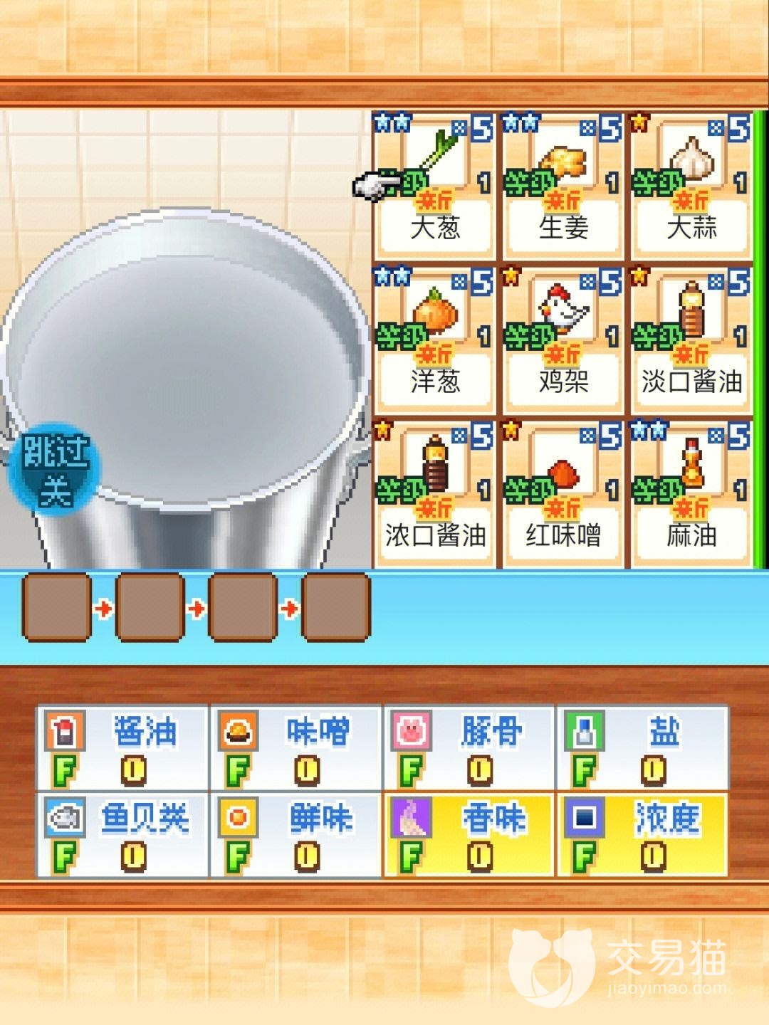这样就能做出一碗浓郁的盐汤底。这样就可以达到难度值适中,价格最高的拉面盐系汤底了,所以这样的搭配更加合理。
