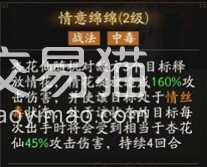 最后战法上面其实杏花仙的战法技能就是一个群体技能,目标是能够锁定对面三个角色,造成的伤害是各自都有160%的伤害,伤害比例算比较高的,并且给对面带来一个情花影响的效果,后期每一次己方对敌方发起攻击的时候就会带来的45%的杏花仙攻击的数值,持续掉血的状态可以维持四个回合。