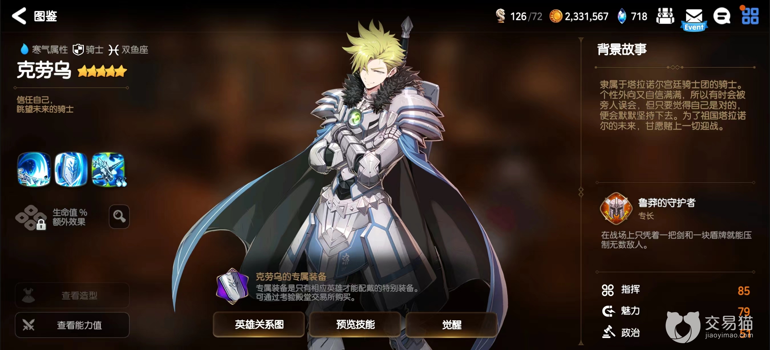 克劳乌是第七史诗中的一个角色,定位是骑士,骑士自然是冲在前排,给队友创造舒服的输出环境的,身板还得够硬,不然也抗不了几回合就得倒下,今天就给大家介绍下第七史诗克劳乌强度怎么样,了解角色强度最直接的方法就是从技能机制上分析,下面就让小编带大家一起来看看吧!