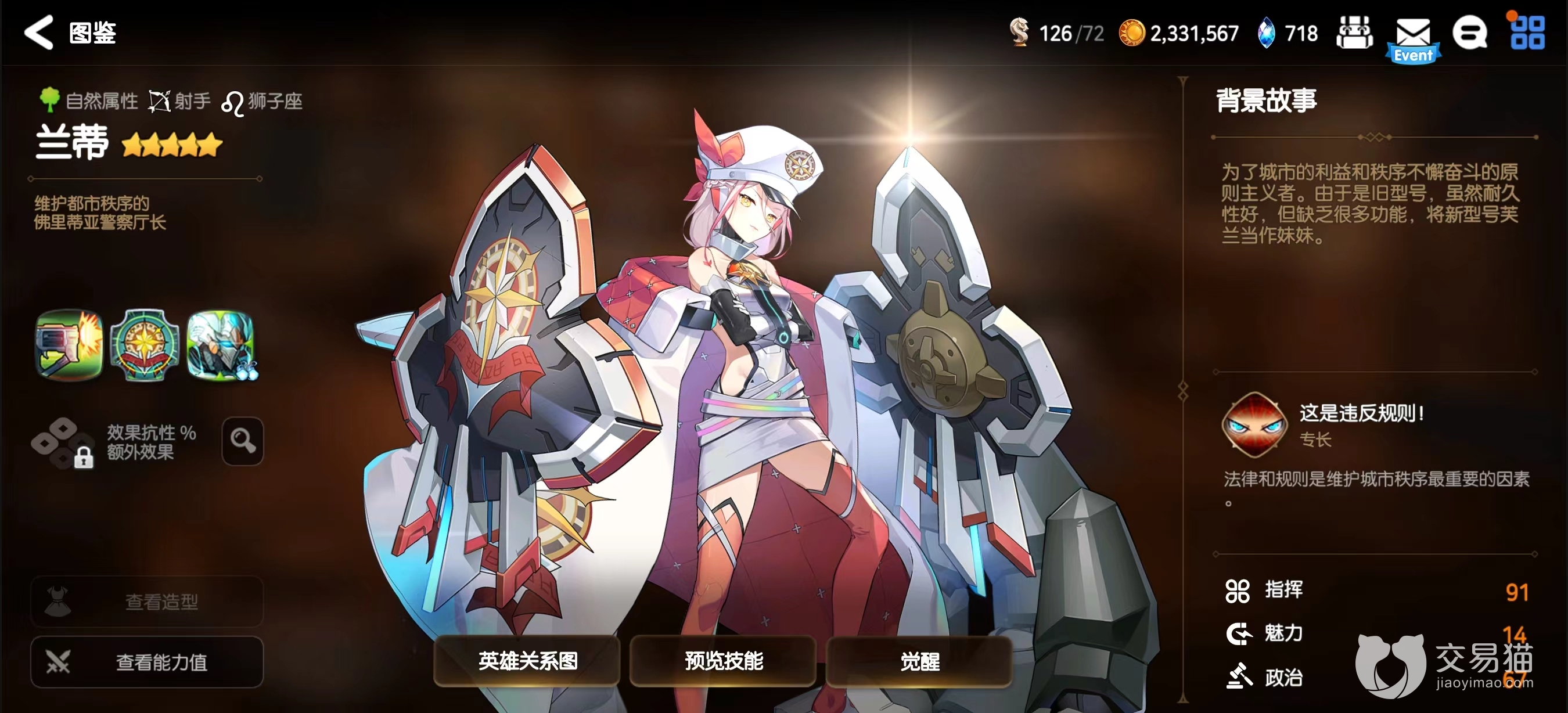 3.技能三:攻击敌方全体目标,且不会触发反击效果,并给全队提升15%的行动条,在战斗开始时兰蒂斗志如果是满的话,该技能冷却时间清零和50%的护甲穿透。