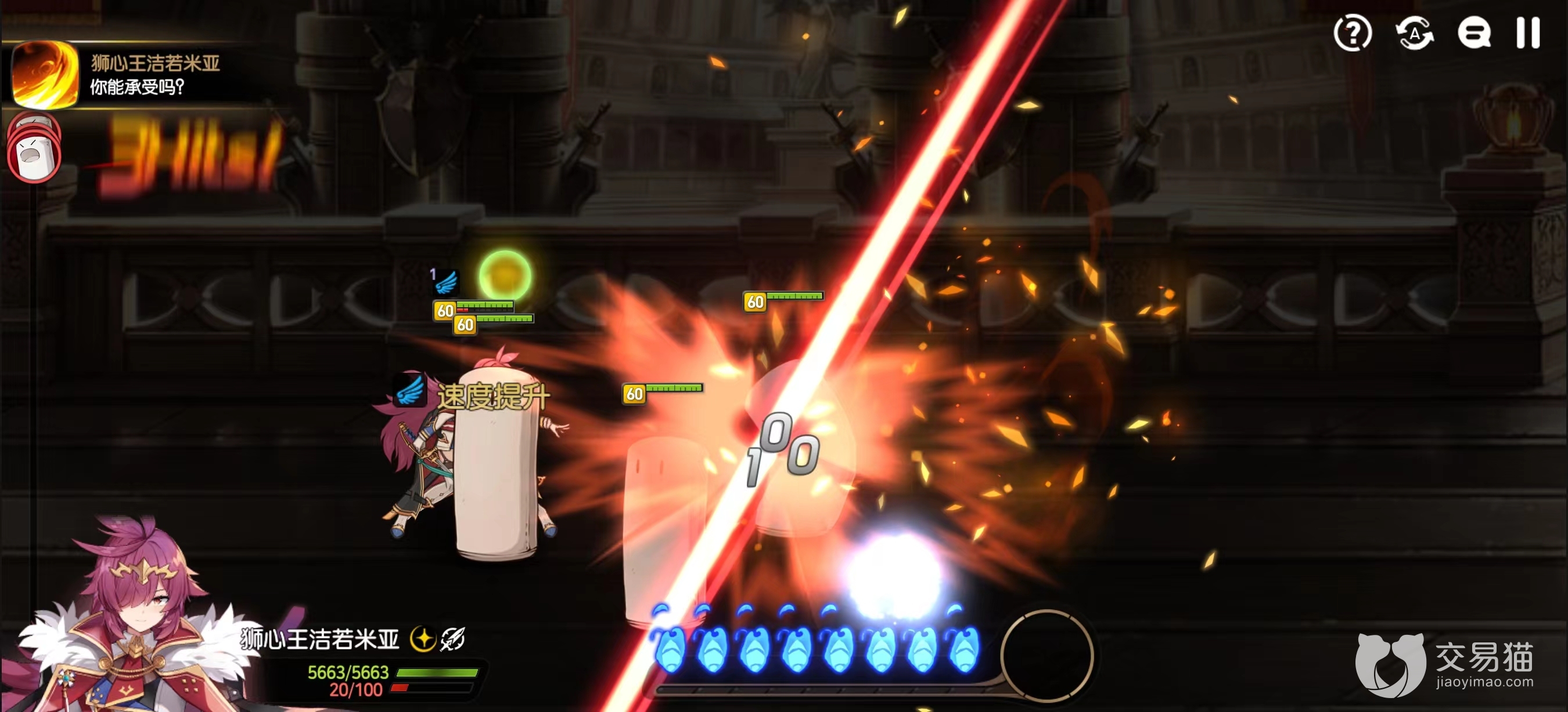 1.你能承受吗,该技能可以给狮心王洁若米亚积攒20点斗气,攻击敌人并获得30%的提速。