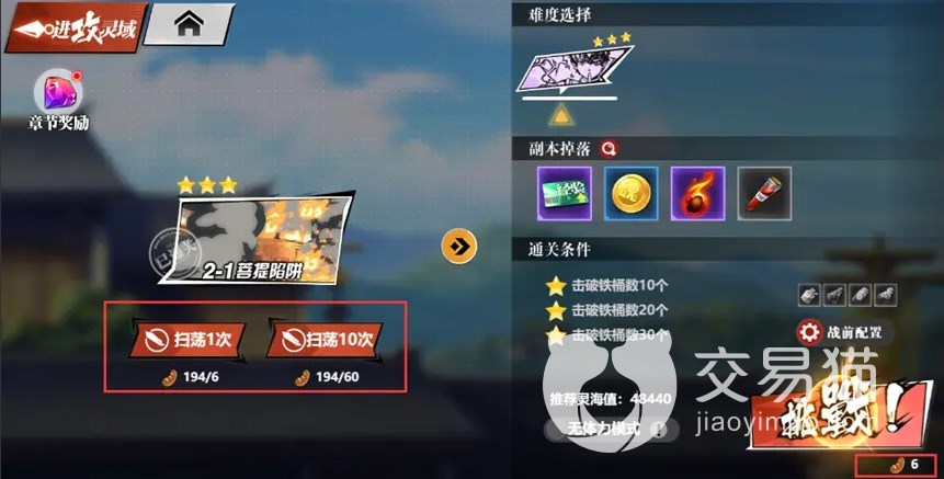 不用花太多精力去思考怎么升级效率高或者说体力怎么分配好,因为在这个游戏里体力只能用来刷本,不管是自己手动去刷还是一键扫荡都能给角色带来经验提升。当我们完成新手流程后,等级会逐渐稳定下来,这时候升1级就没有那么快了,甚至这时候体力还有许多剩余的。利用这些体力去刷主线副本,打灵域3星通关过的,然后选择扫荡就能快速获得人物经验。